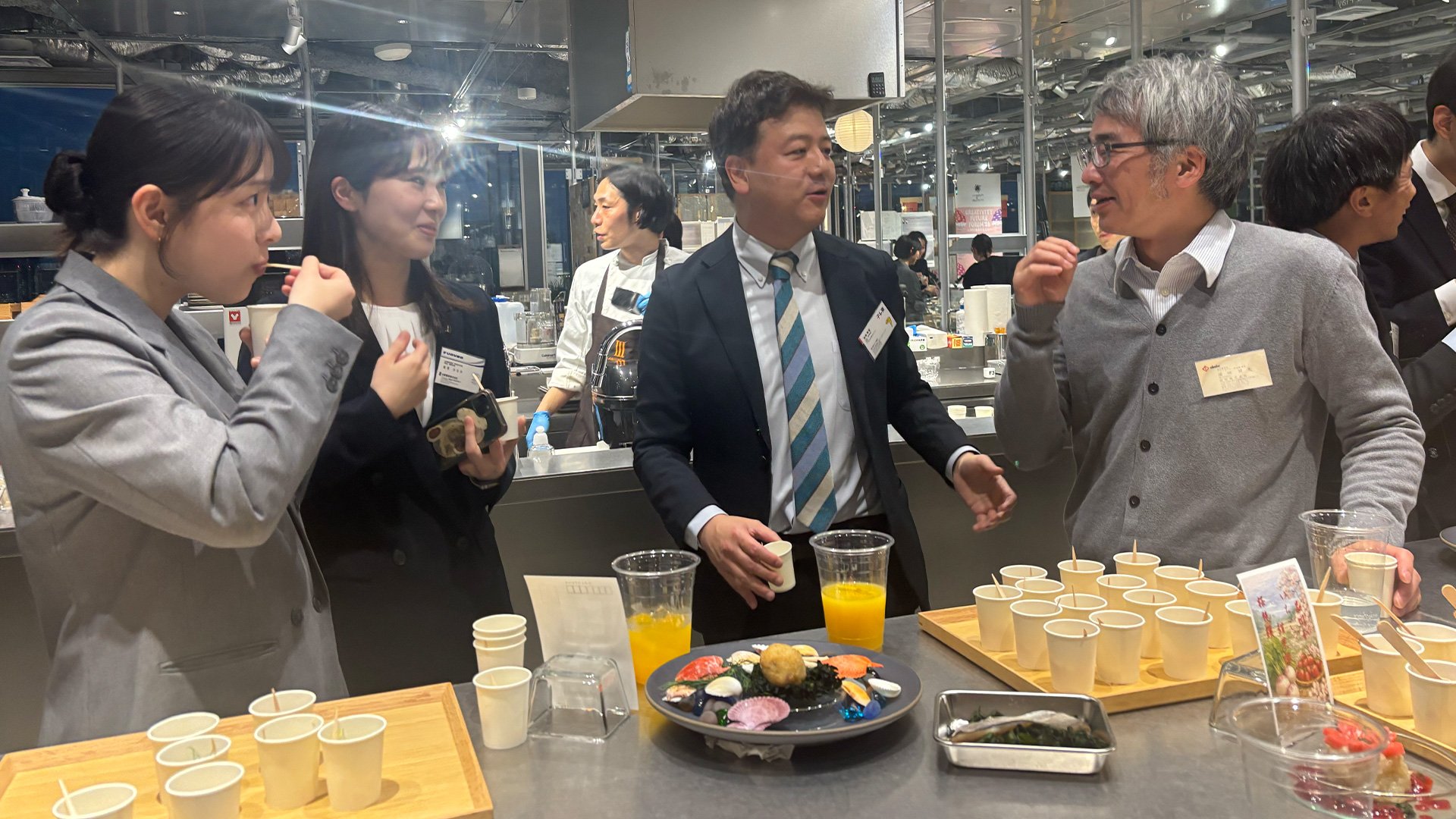 カジュアルな懇親会ですが、並んだのはホテルクオリティーの料理。「レストランの前菜みたい!」「とっても美味しい!」「全く臭みがない!」「これが食べられず、廃棄されているなんて!?」と、驚きを隠せぬ声があちこちから聞こえました。