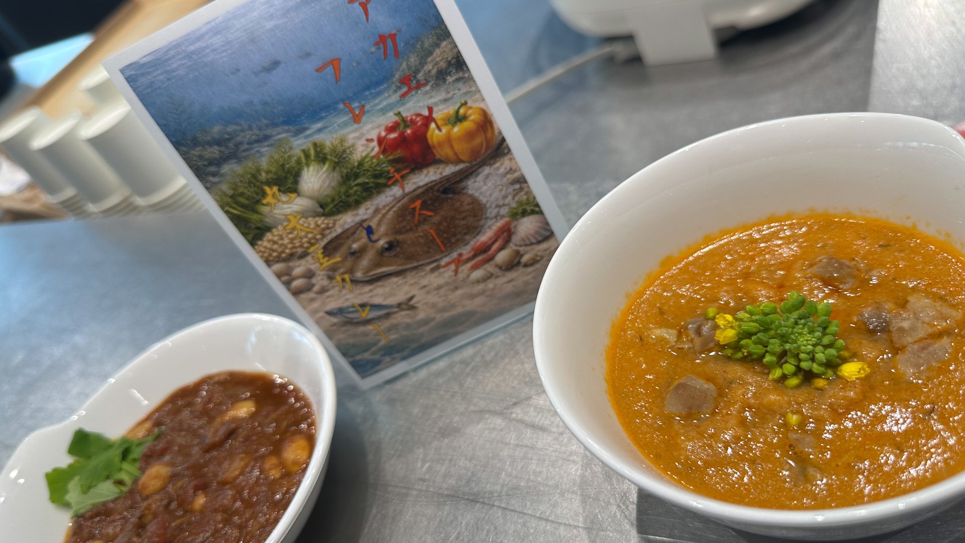 こちらは、チヌ(クロダイ)の炊き込みご飯とセビーチェ(マリネ)。