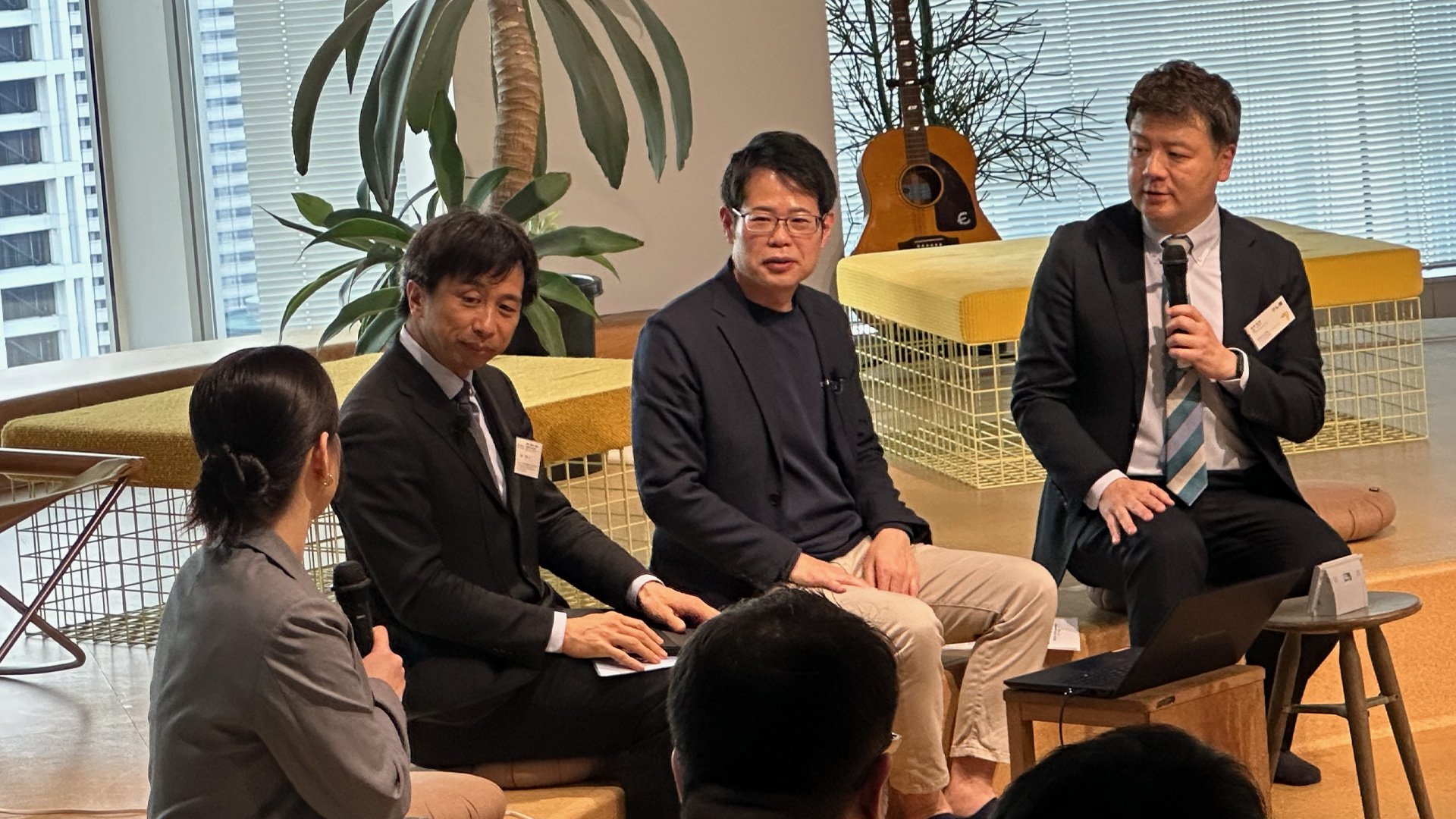 開催場所のカジュアルなスペース特性を利用し、司会者がマイクを持ちながら参加者の間を歩き回って目線を合わせることで、様々な業界の視点や広がりのある意見を聞くことができました。